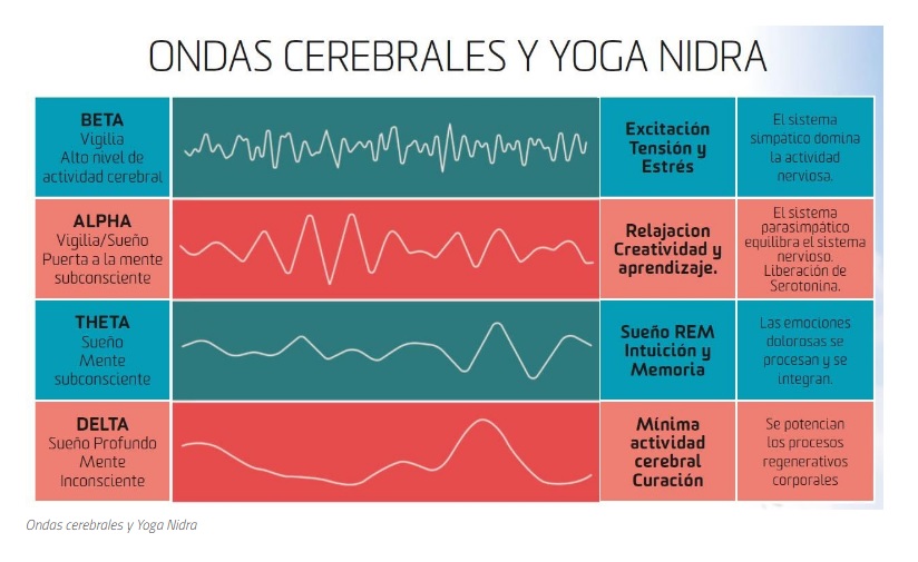 - Se libera serotonina, que conduce a un estado de calma interior, esto es debido a que durante el proceso del Yoga Nidra el cerebro entra en el estado de ondas alfa.